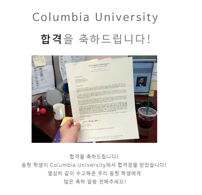 [합격장] Columbia University 합격을 축하드립니다