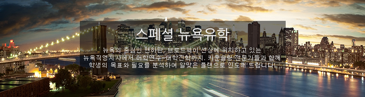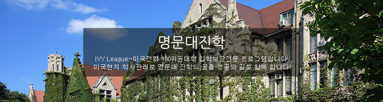 ① (주)미국유학닷컴 은 개별적인 맞춤서비스를 제공하기 위해 이용정보를 저장하고 수시로 불러오는 '쿠기(cookie)'를 사용합니다. ② 쿠키는 웹사이트를 운영하는데 이용되는 서버(http)가 이용자의 컴퓨터 브라우저에게 보내는 소량의 정보이며 이용자들의 PC 컴퓨터내의 하드디스크에 저장되기도 합니다. 가. 쿠키의 사용 목적 : 이용자가 방문한 각 서비스와 웹 사이트들에 대한 방문 및 이용형태, 인기 검색어, 보안접속 여부, 등을 파악하여 이용자에게 최적화된 정보 제공을 위해 사용됩니다. 나. 쿠키의 설치•운영 및 거부 : 웹브라우저 상단의 도구>인터넷 옵션>개인정보 메뉴의 옵션 설정을 통해 쿠키 저장을 거부 할 수 있습니다. 다. 쿠키 저장을 거부할 경우 맞춤형 서비스 이용에 어려움이 발생할 수 있습니다.