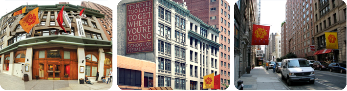 스쿨 오브 비주얼 아트 (School of Visual Arts) 는 뉴욕주 맨하탄에 위치해 있으며 미국의 여러 예술 학교 중 선두주자를 달리고 있는 학교 중 하나로, 그래픽 디자인, 컴퓨터 아트로 유명한 학교입니다. 세계에서 가장 세련된 도시 중 하나인 뉴욕에서 굴지의 아티스트와 디자이너를 배출해온 SVA의 사명은 프로를 양성하는 것입니다. 300여 명에 이르는 교수진은 각 분야에서 최고로 인정받는 실무자들이며 비례, 질감, 대칭, 색상, 균형 같은 디자인의 기본 요소들을 현장 경험을 토대로 심도있게 가르칩니다.
